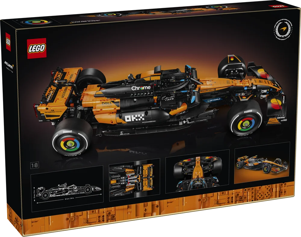 Line up on the grid for a thrilling F1 building project as you assemble this LEGO Technic McLaren MCL39 F1 Car. Admire the faithful details of this 2025 season car, including the steering, suspension, gearbox and differential. Remove the engine cover to examine the V6 engine and access the DRS function. Savour the winning moment as you proudly display the model in tribute to your passion for F1.