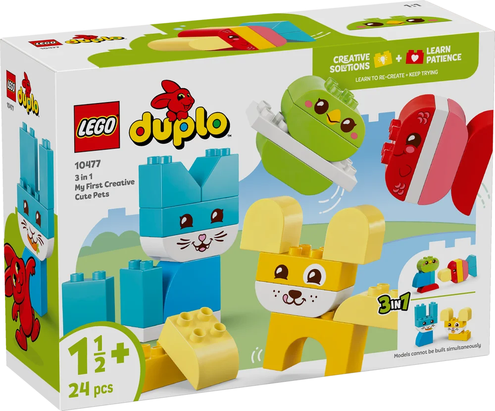 Enjoy creative playtimes with your toddler with this 3 in 1 set. From a pile of 24 bricks, little builders can construct 8 different animals. Toddlers can learn focus as they build and rebuild until they make their perfect pet. They’ll use sorting skills to select the correct colour for their animal, then choose the right brick face. Encourage them to add bricks to see if they can make a new pet.