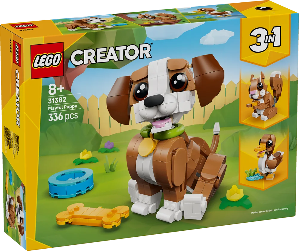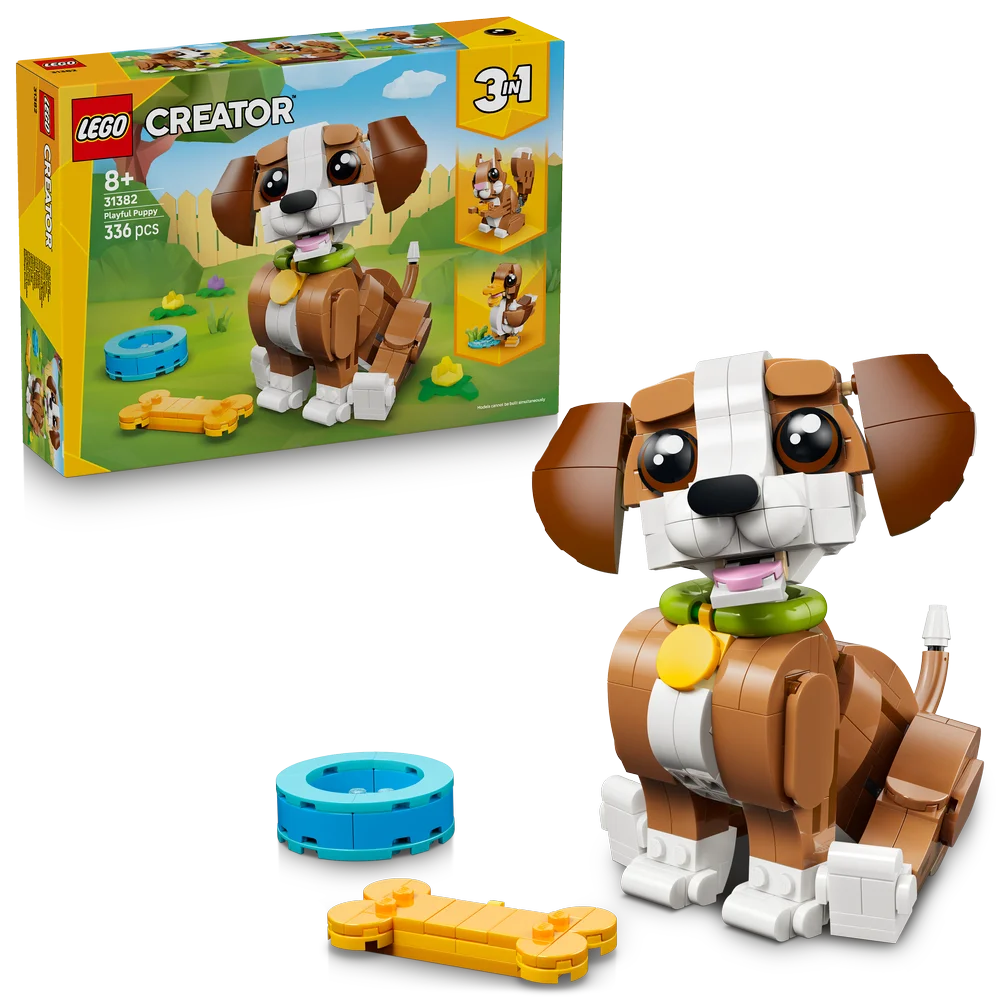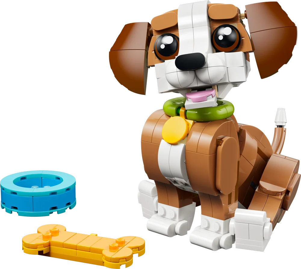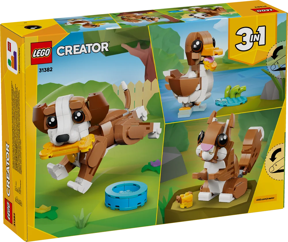 Get ready to enjoy fun stories with 3 supercute LEGO animals! Play with a friendly puppy dog as it chews on a toy bone and drinks from a water bowl. Then rebuild it into a squirrel nibbling on an acorn or a duck next to a pond. What will you build? The choice is yours with this adorable 3 in 1 animal playset.