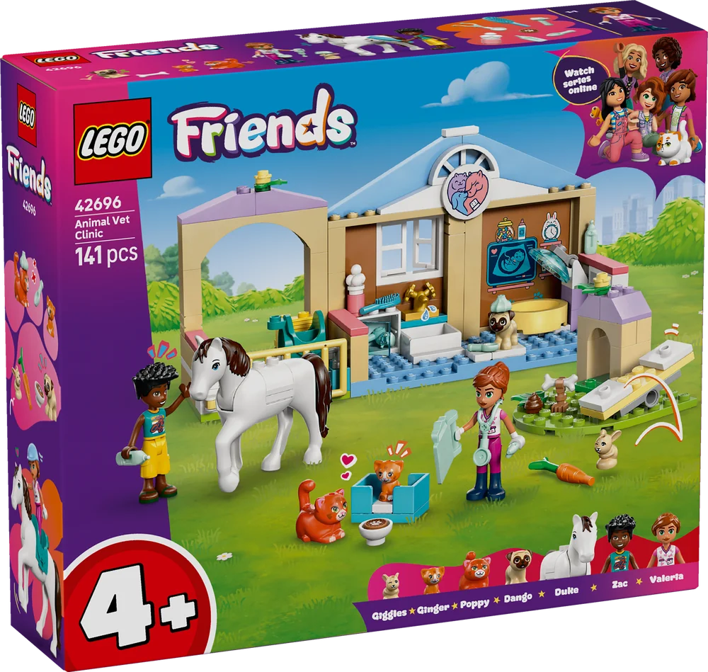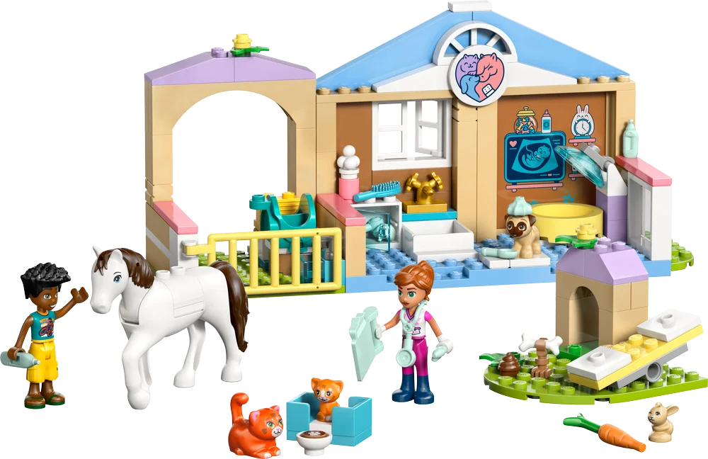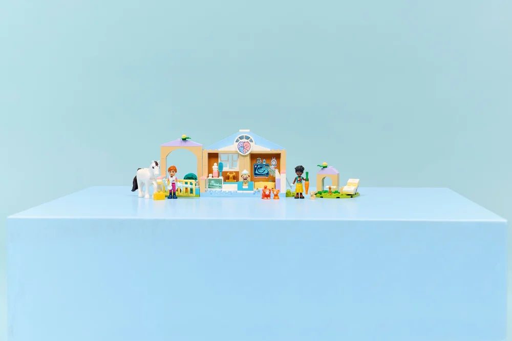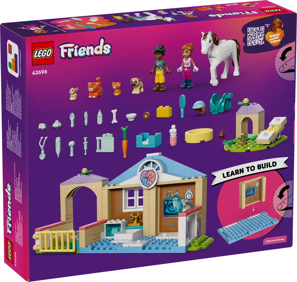 Join Leo as he cares for the animals at the LEGO Friends Animal Vet Clinic. He helps vet Valeria examine the pregnant cat. They can feed and brush the pets or visit the stable to check on the horse and go for a ride. There’s even a pet playground with a seesaw for the animals to play on.