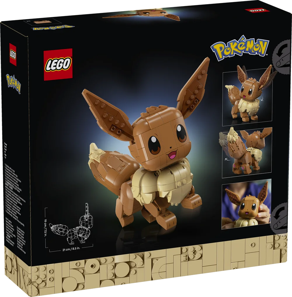 LEGO Pokémon Eevee figure has a movable tail, limbs and ears for articulation