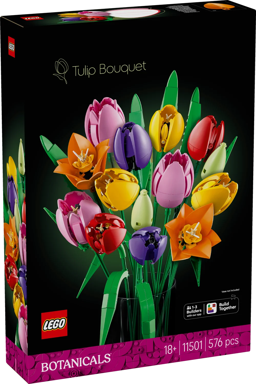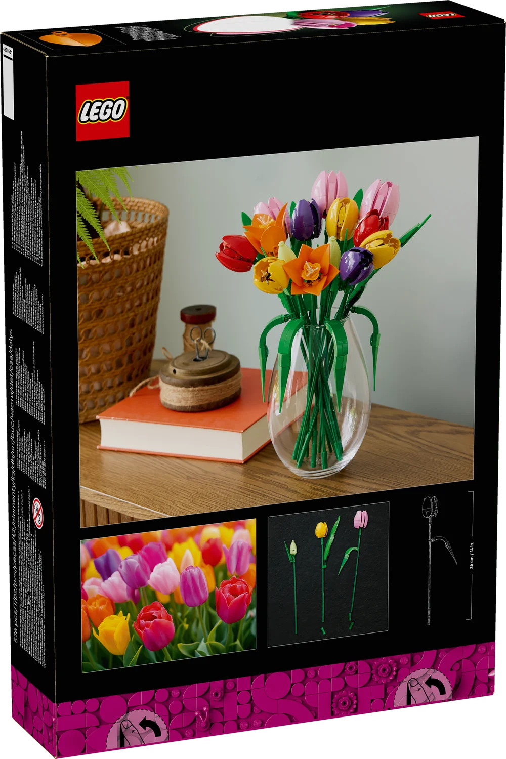 Feel creativity flourish as you craft a colourful bouquet of LEGO tulips. Build each bloom and marvel at the authentic details and colours – you’ll discover vibrant green buds, purple closed tulips and red, yellow, pink and orange opened tulips, plus green leaves and adjustable stems for customisation. Once you’ve finished building, display the bouquet proudly as flower decor.