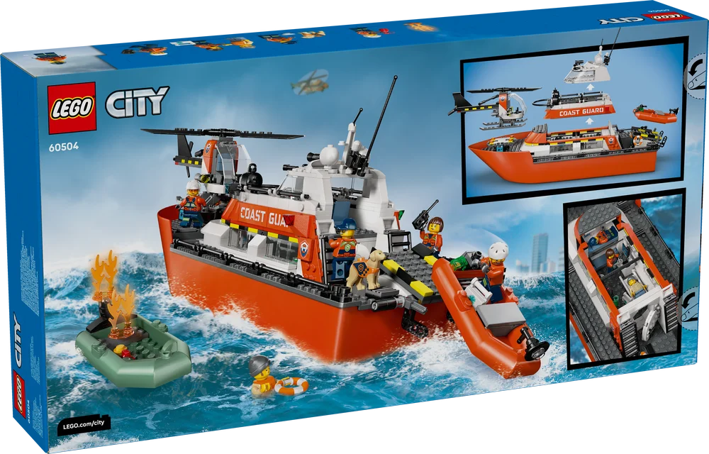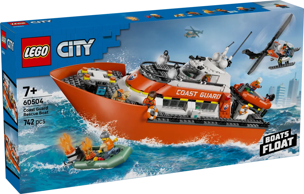 Head for the high seas aboard the awesome coast guard boat. This floating rescue centre is packed with features! Join the crew at the captain’s bridge, cook up a meal in the kitchen or relax below deck in the cosy sleeping quarters. When duty calls, deploy the onboard helicopter from the landing pad and launch the rescue dinghy from the ramp. Epic ocean adventures await in LEGO City!