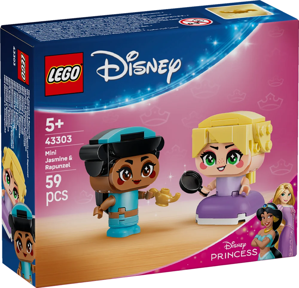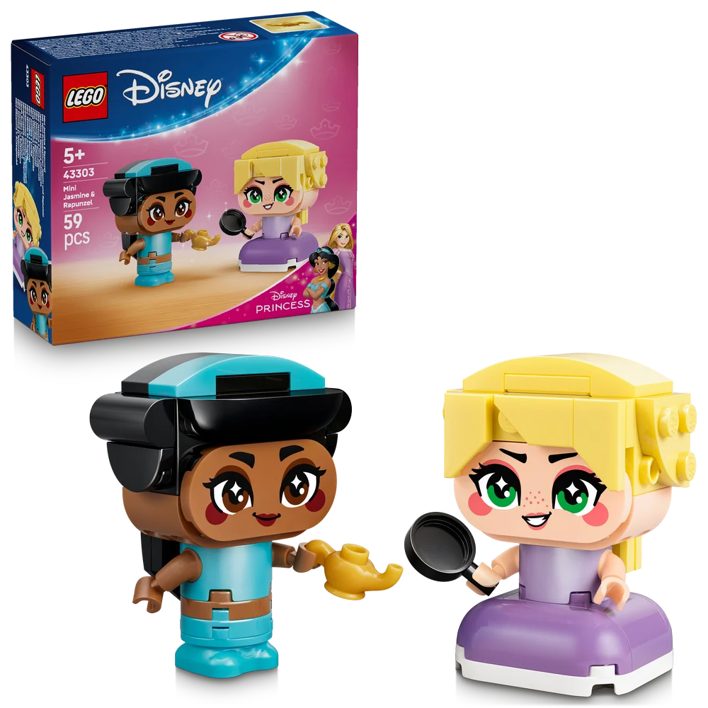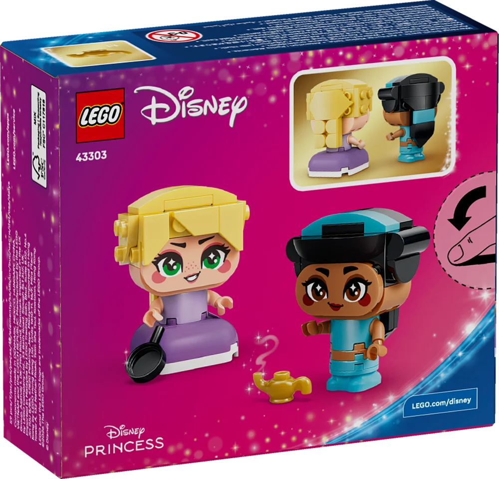 Jump into new adventures with Jasmine and Rapunzel! Create these two brick-built characters and then figure out what lies ahead. Is there something new to discover over the next hill? Make a wish and see what happens. No matter what, it should be exciting. After a day full of escapades and play, you can set Jasmine and Rapunzel on display in your room until the next time!