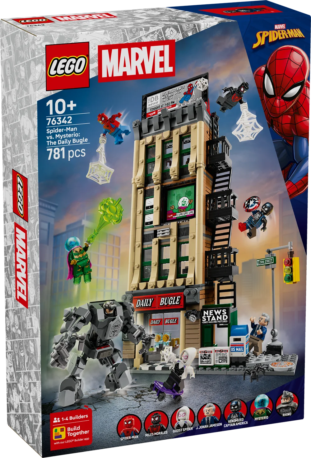 Swing through the air with Spider-Man and Miles Morales, battle Mysterio and Venomized Captain America and blast into the newsroom with Rhino’s mech! Explore 4 floors full of Super Hero action with this epic Daily Bugle adventure building set. And with Build Together mode in the LEGO Builder app, your friends and family can join the creative fun.